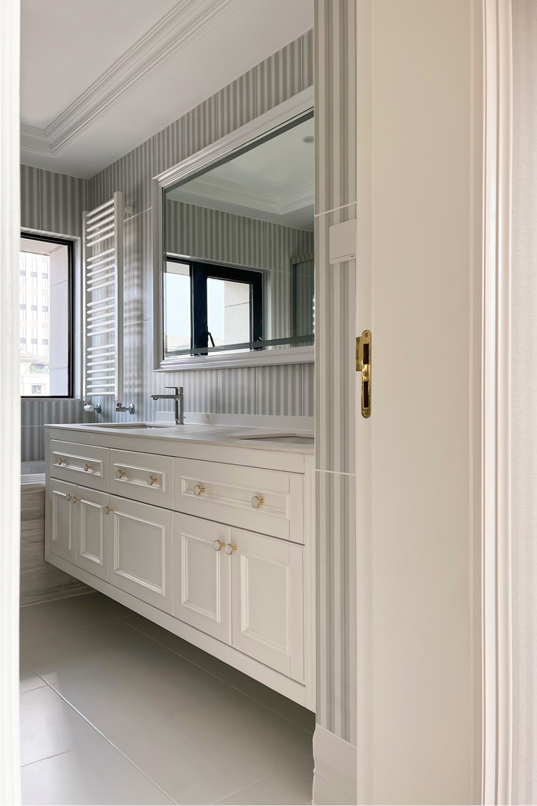 简约时尚的雅典白家装设计,垂直线条下营造出一个优雅空间,运用独特的设计美学,布局出温暖时尚的家庭氛围。