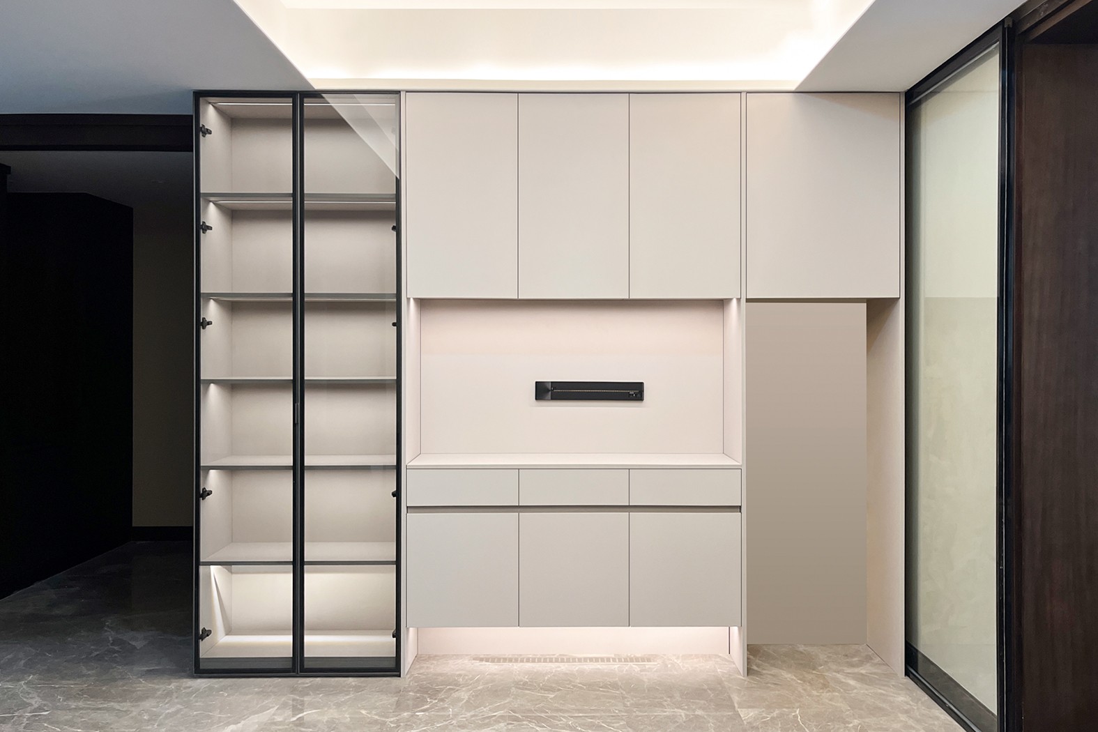 一个空间的稳定和谐,各类颜色柜体的融合搭配,让光线在空间中肆意流淌,贴合与舒适成为空间的底色。