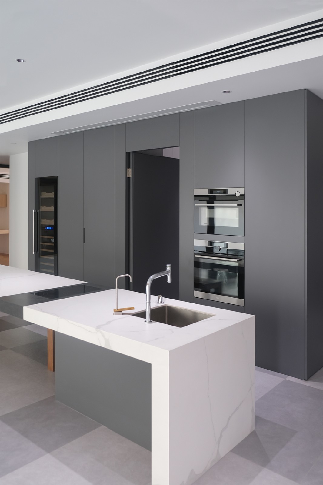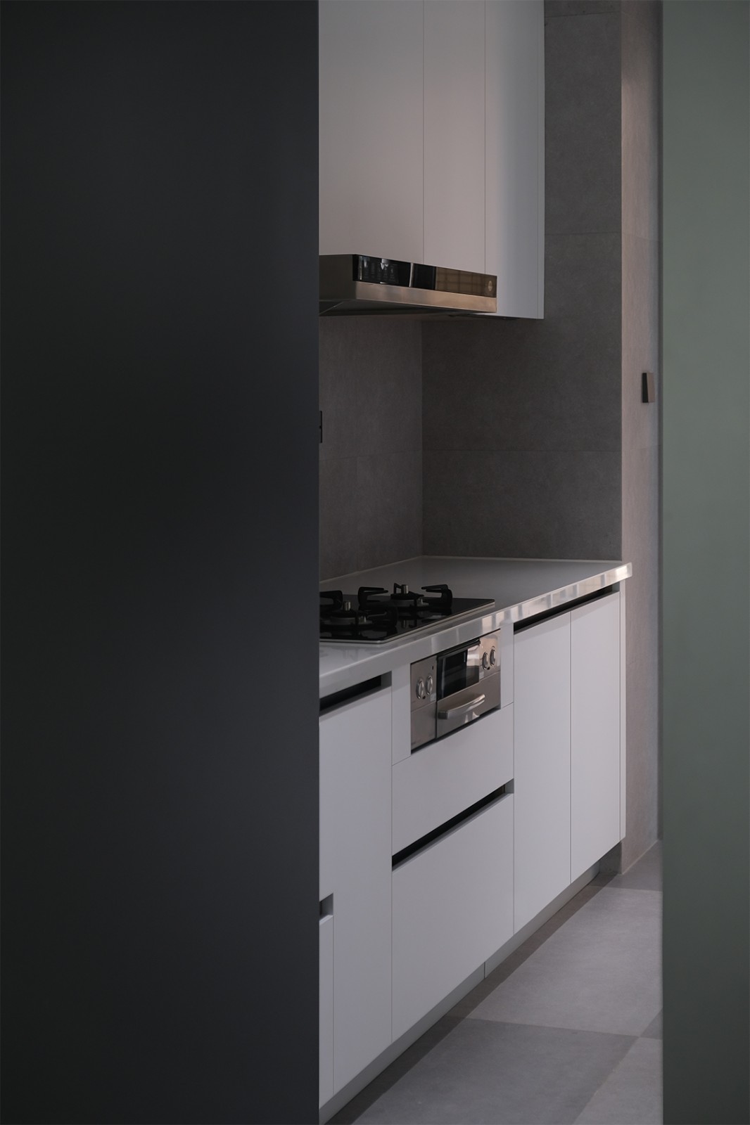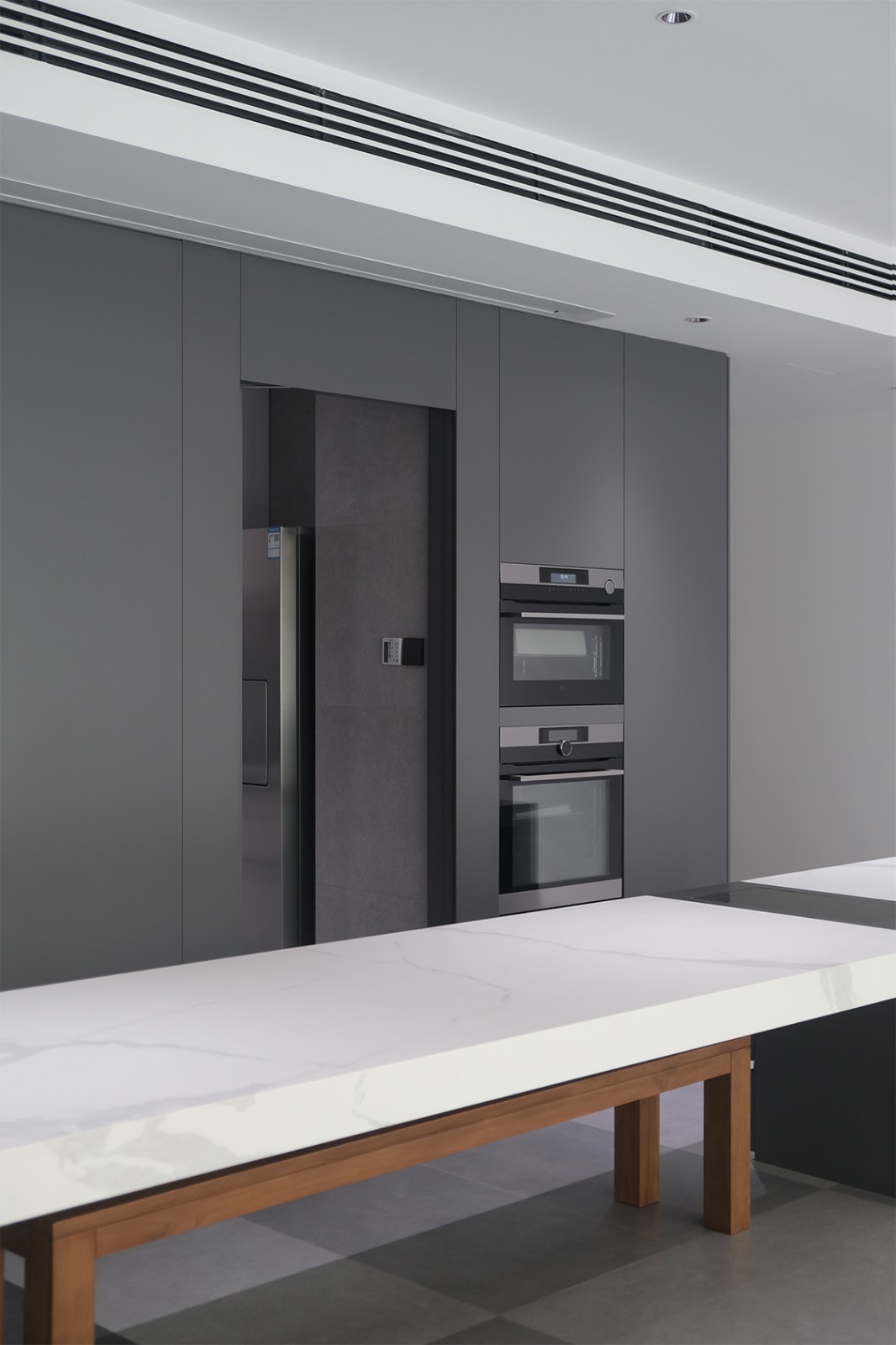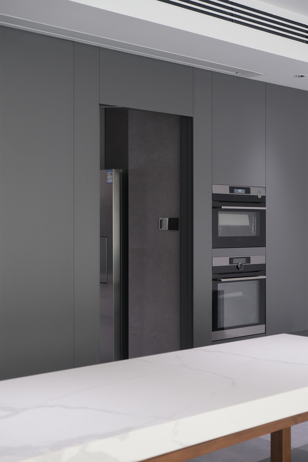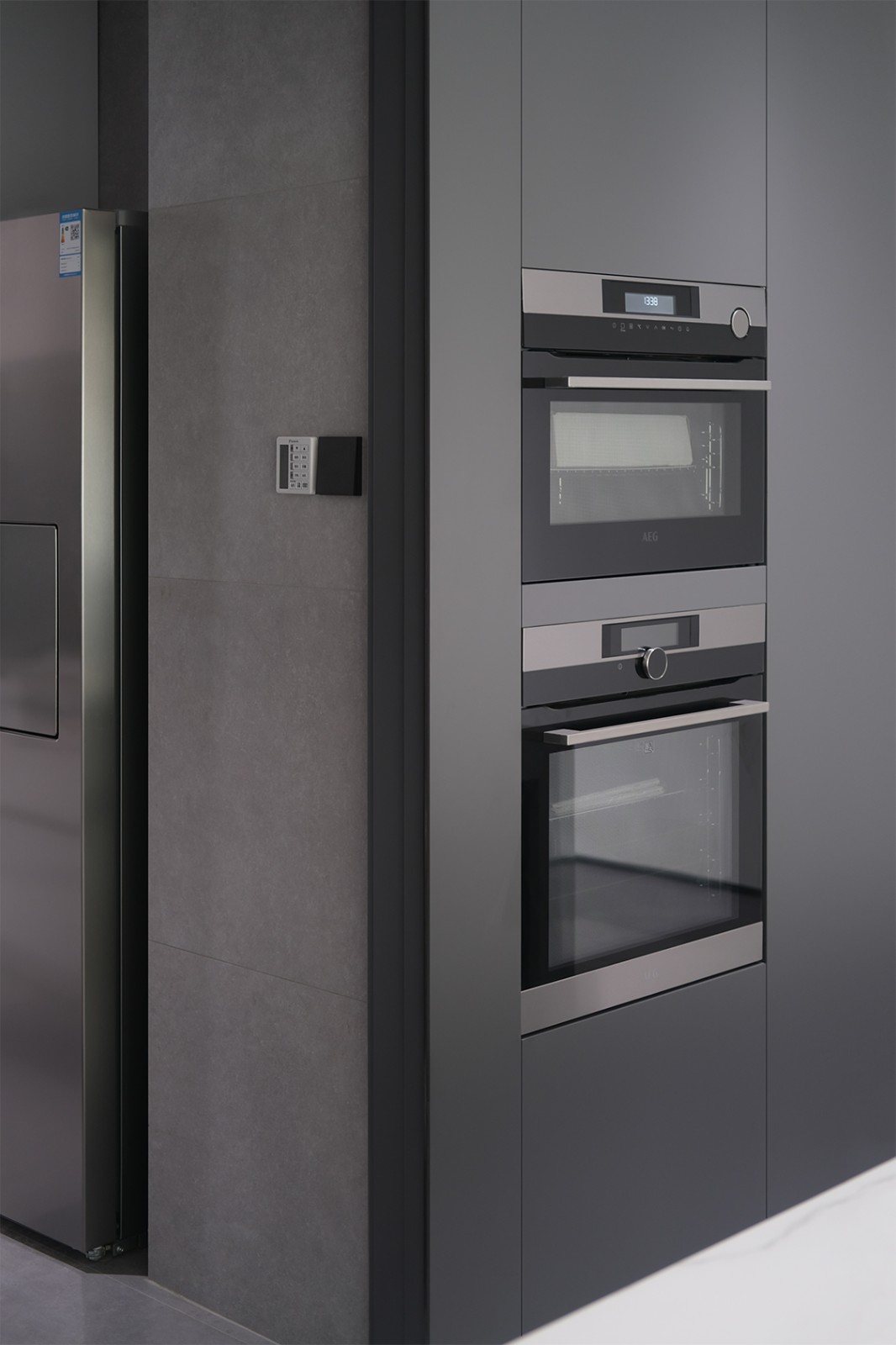 一套简单的中西厨橱柜,既可满足传统中式饮食,同时也能解决简餐需求,以及与家人之间的互动。
