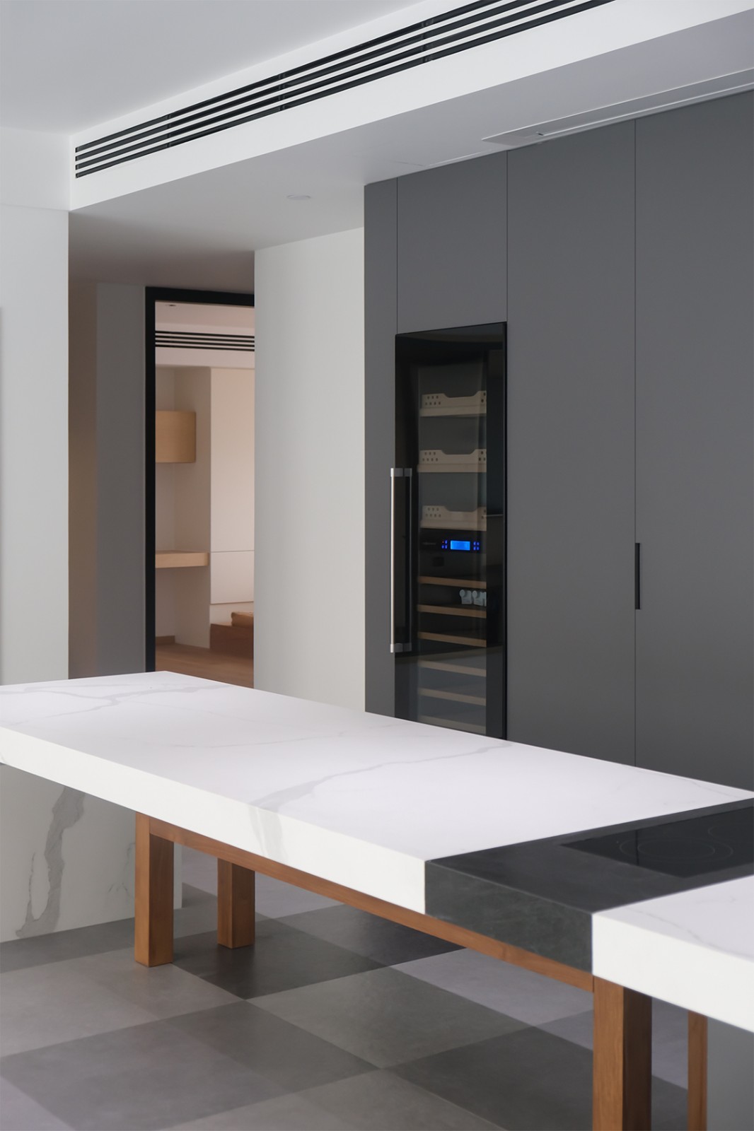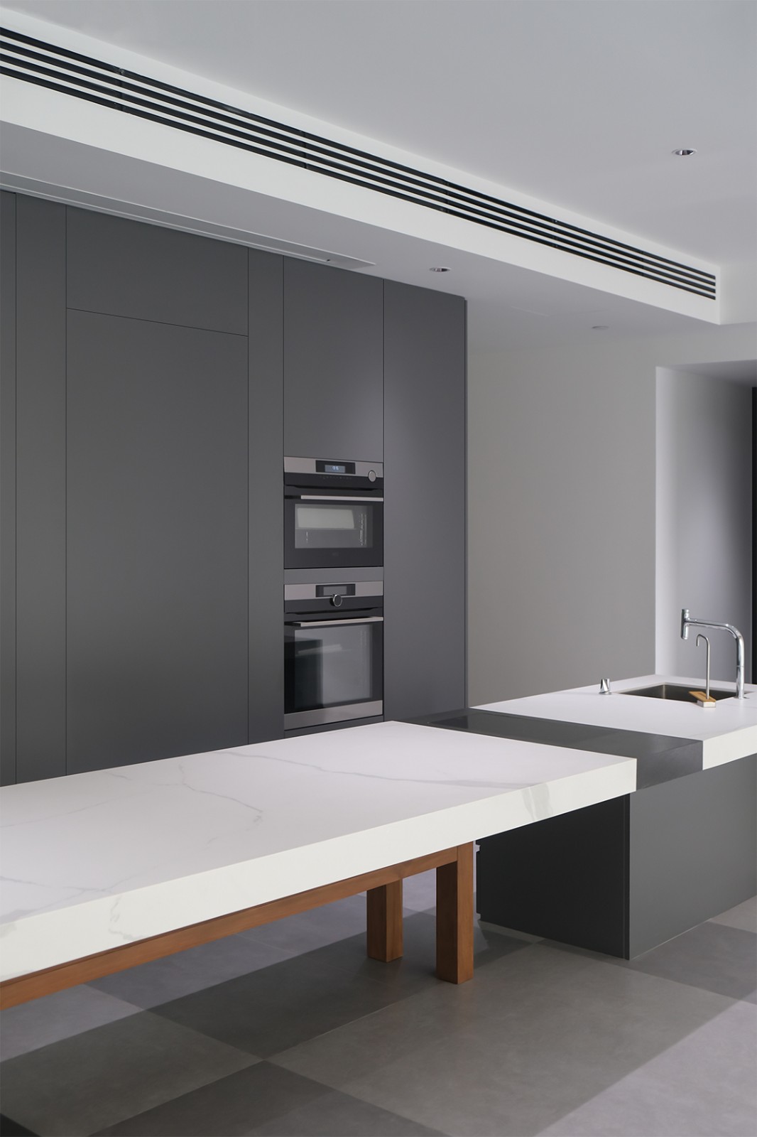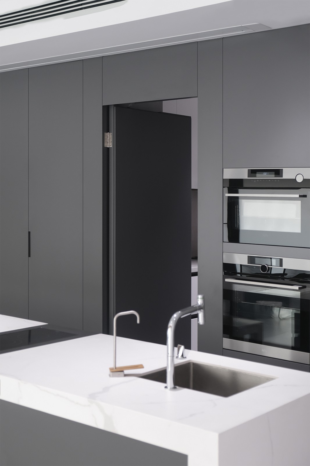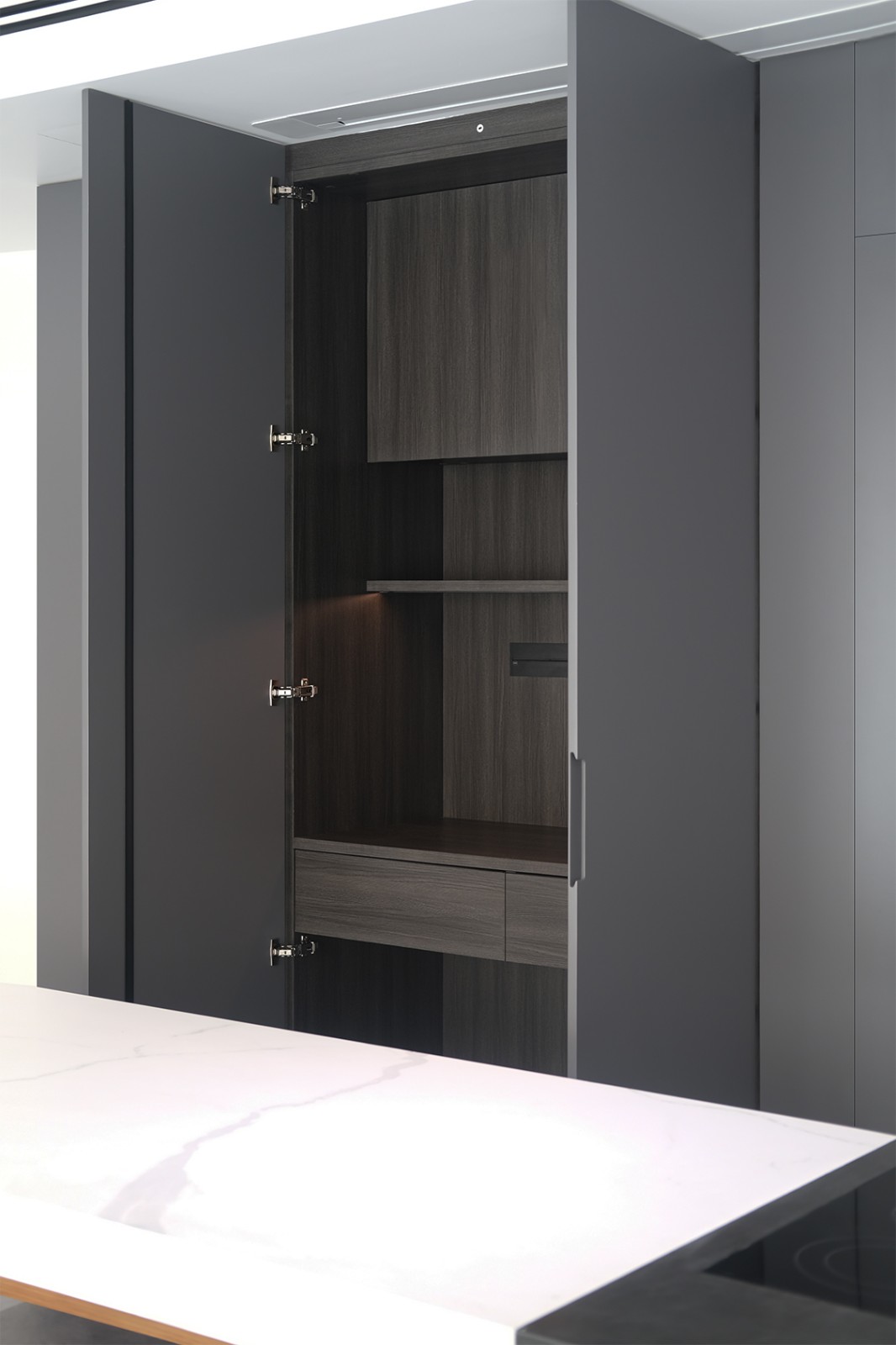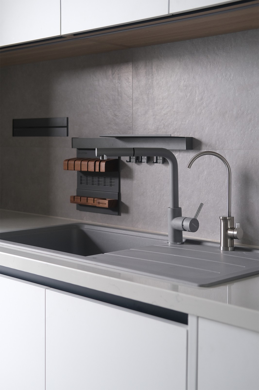 一套简单的中西厨橱柜,既可满足传统中式饮食,同时也能解决简餐需求,以及与家人之间的互动。