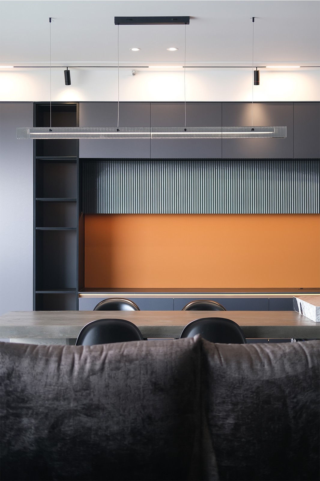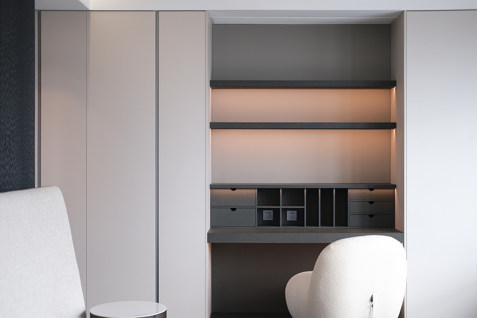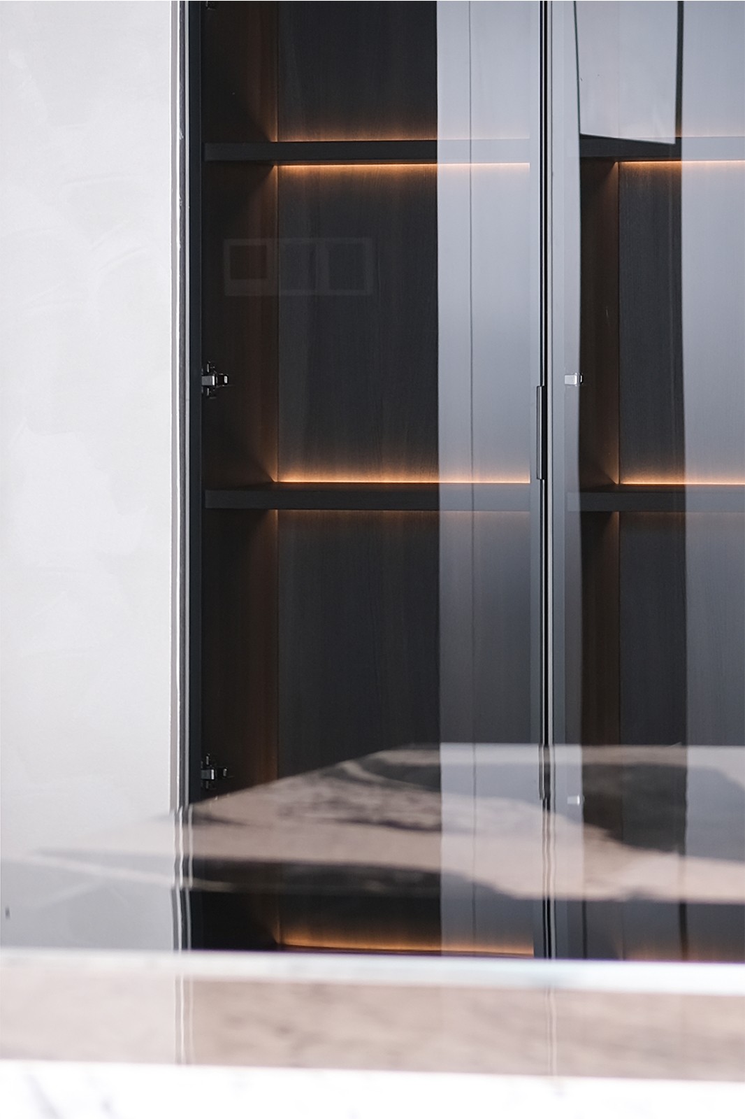看腻了奶油调的甜腻,恰到好处的深色调,给予出不同的感悟,光自由地游走在每一个空间中,克己不张扬的设计里尽显低调。