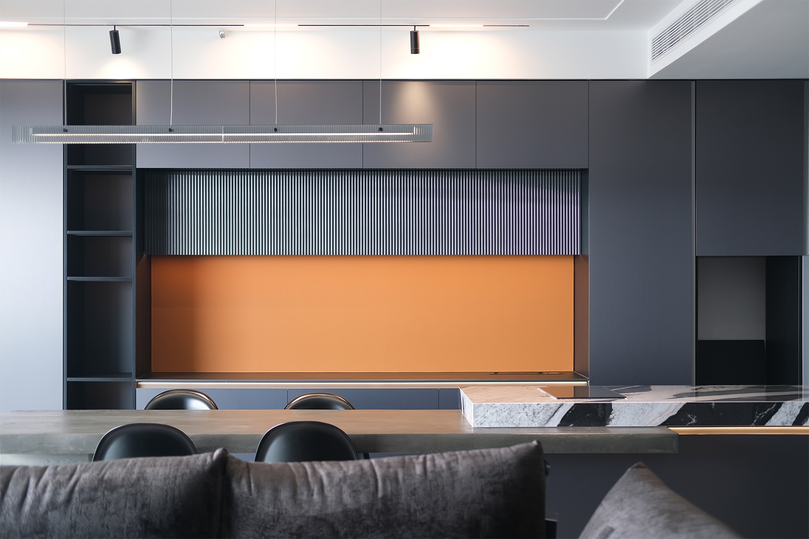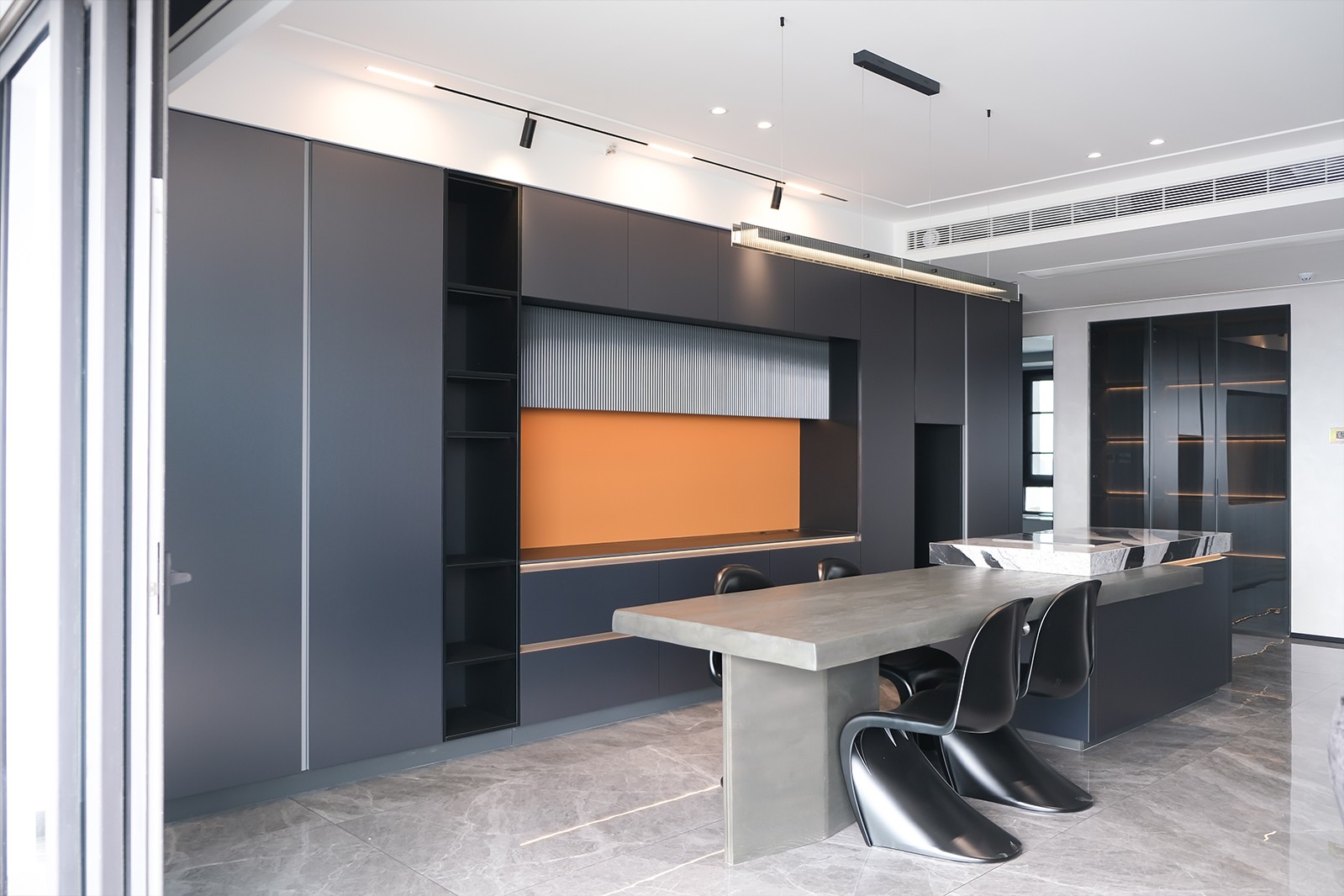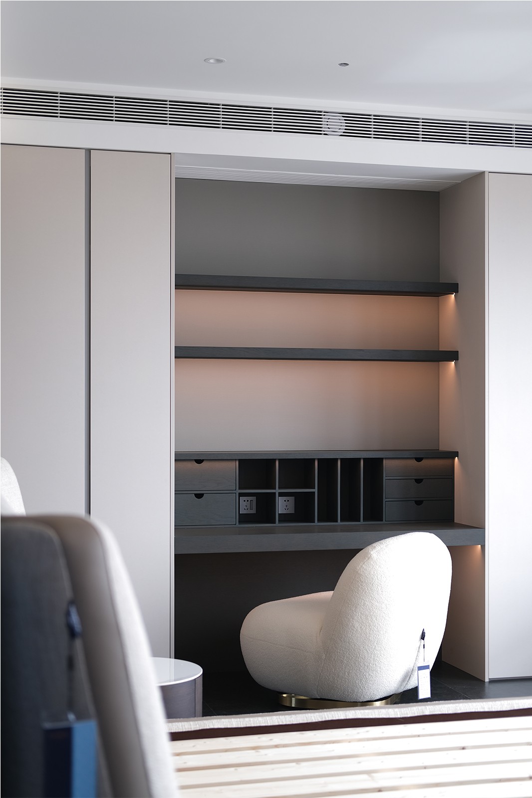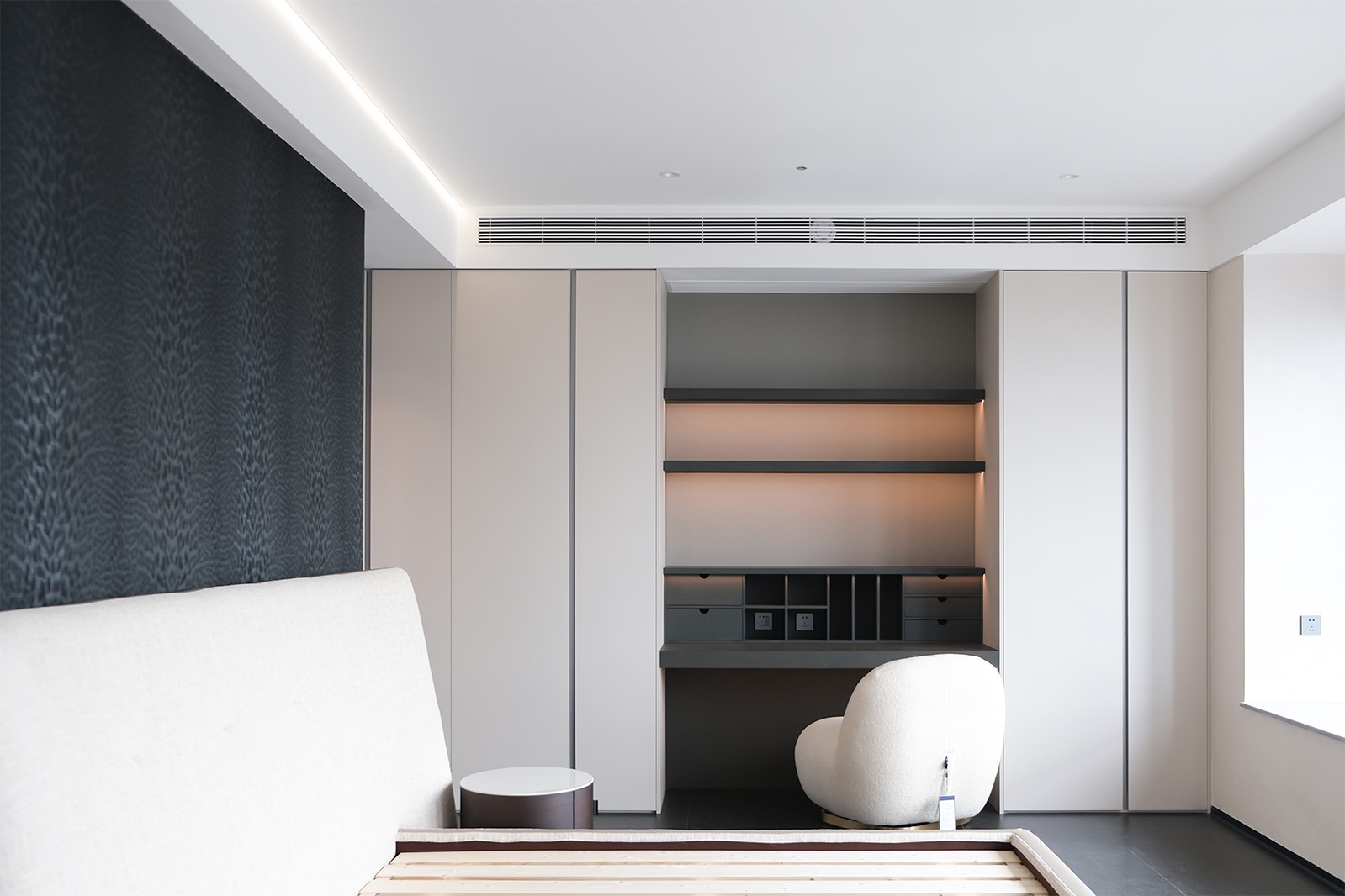 看腻了奶油调的甜腻,恰到好处的深色调,给予出不同的感悟,光自由地游走在每一个空间中,克己不张扬的设计里尽显低调。